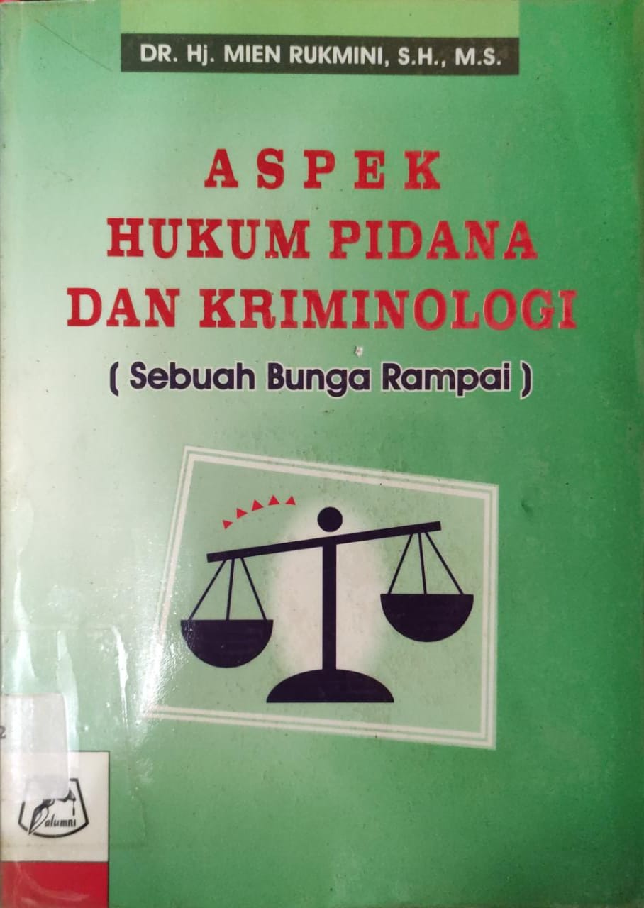 Abstrak Aspek hukum Pidana dan kriminologi. Fenomena menunjukan pahwa pada saat sekarang masyarakat pencari keadilan menyaksikan banyak kejadian atau kasus - kasus yang mengundang perhatian serta memerlukan pemahaman dari para ahli dan pemerhati hukum, khususnya dalam bidang hukum pidana dan kriminologi.Beberapa kasus seperti, tindak pidana pemerkosaan, tindak kekerasan terhadap anak - anak dan wanita, tindak pidana yang etrselubung dalam periklanan yang merugikan konsumen, tindak pidana korupsi dan tindak pidana lainya yang pada saat sekarang belum dapat diselesaikan dengan baik dam memenuhi perasaan keadilan masyarakat.Permasalahn utamanya adalah sampai sejauh mana kasusu kasus tersebut diatur dalam undng - undang serta dapat diproses berdasarkan hukum positif dan sejauhmana hukum telah melindungi para korban tindak pidana tersebut.Didalam buku ini penulis berusaha untuk menganlisis fenomena tersebut dari aspek hukum pidana dan kriminologi dengan menyampaikan beberapa tulisan yang berhubungan dengan beberapa tulisn